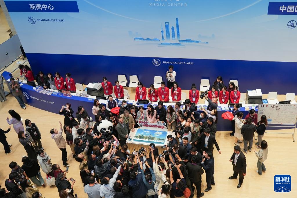 这是11月8日在媒体中心拍摄的圣诞蛋糕。 11月8日是第26个中国记者节。第八届中国国际进口博览会上,媒体记者在展区进行采访。为庆祝媒体记者节,进博会新闻中心同期举办了多项活动。供图:新华社记者 张子亚 分页 11月8日,媒体记者在新闻中心拍摄新闻日活动。 11月8日是第26个中国记者节。第八届中国国际进口博览会上,媒体记者在展区进行采访。为庆祝媒体记者节,进博会新闻中心同期举办了多项活动。新华社记者 方哲分页 11月8日,媒体记者在新闻中心工作。 11月8日是第26个中国记者节。第八届中国国际进口博览会上,媒体记者采访在展区进行采访。为庆祝媒体记者节,进博会新闻中心同期举办了多项活动。供图:新华社记者 张子亚 分页 11月8日,媒体记者对该新闻中心进行了报道。 11月8日是第26个中国记者节。第八届中国国际进口博览会上,媒体记者在展区进行采访。为庆祝媒体记者节,进博会新闻中心同期举办了多项活动。新华社张子亚分页供图 11月8日,媒体记者出席新闻中心举办的新闻日活动。 11月8日是第26个中国记者节。第八届中国国际进口博览会上,媒体记者在展区进行采访。为庆祝媒体记者节,进博会新闻中心同期举办了多项活动。提供照片新华社记者 张子亚 分页 11月8日,媒体记者(左)在新闻中心学习体验手工编织技艺。 11月8日是第26个中国记者节。第八届中国国际进口博览会上,媒体记者在展区进行采访。为庆祝新闻记者媒体节,CIMany活动在IE新闻中心同步开展。新华社记者丁鹤摄 11月8日,媒体记者在国展上接受采访。 11月8日是第26个中国记者节。第八届中国国际进口博览会上,媒体记者在展区进行采访。为庆祝媒体记者节,进博会新闻中心同期举办了多项活动。新华社张子牙分页供图 11月8日,媒体记者在国展讨论采访细节化。 11月8日是第26个中国记者节。第八届中国国际进口博览会上,媒体记者在展区进行采访。为庆祝媒体记者节,进博会新闻中心同期举办了多项活动。新华社记者丁鹤供图。