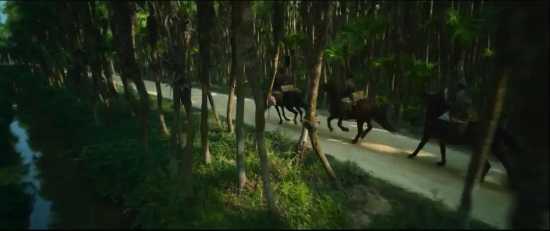 在电影中,“李”队在郁郁葱葱的森林中跑步并跑步。大火和翡翠绿是交织在一起的,使照片特别令人震惊。这个场景是在广东省江门南南岛南丹岛的Quilin生态湿地公园拍摄的。