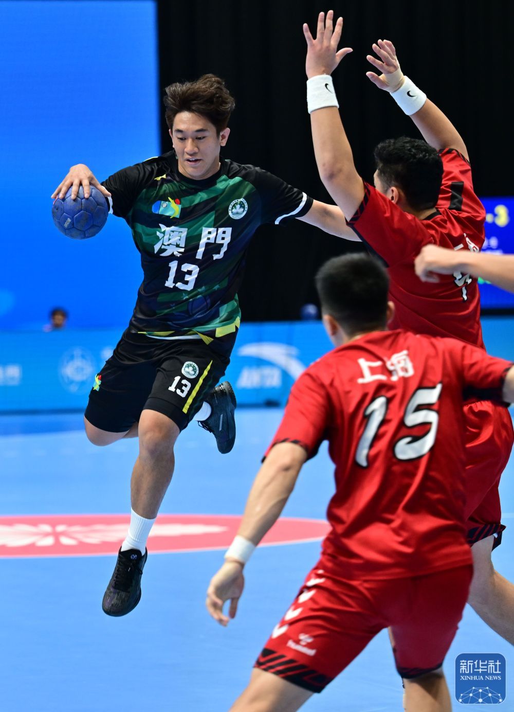 11月5日,在香港启德大球场举行的第十五届全国男子手球锦标赛A组比赛中,上海队以28比18战胜澳门队。 ^澳门队李元华(左)在比赛中。 ^ 上海队球员刘子杰(右)在比赛中。 ^ 澳门队的仇晓晖(左二)在比赛中进攻。 ^ 澳门队仇晓晖在比赛中射门(左二)。 ^ 上海队杨廷庆(右二)在比赛中射门。 ^ 上海队杨廷庆(上)在比赛中射门。 ^ 上海队潘伟杰(上)在比赛中射门。 ^ 上海队球员张立晨(右)在比赛中庆祝进球。 ^ 上海队球员潘伟杰(左一)和澳门队球员李元华(右三)入选最佳球员。新华社记者 于洋 供图